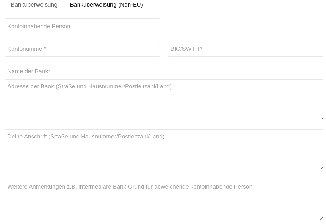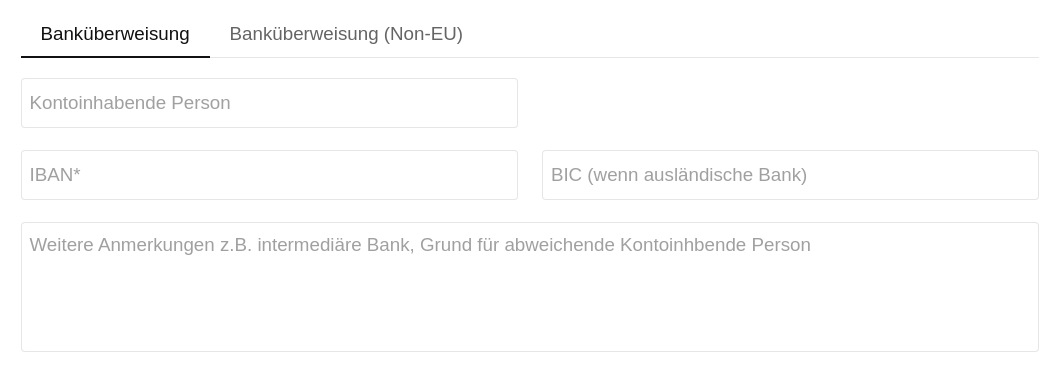 (Banküberweisung) --> ändern zu: „weitere Anmerkungen, z. B. intermediäre Bank, Grund für abweichende kontoinhabende Person“